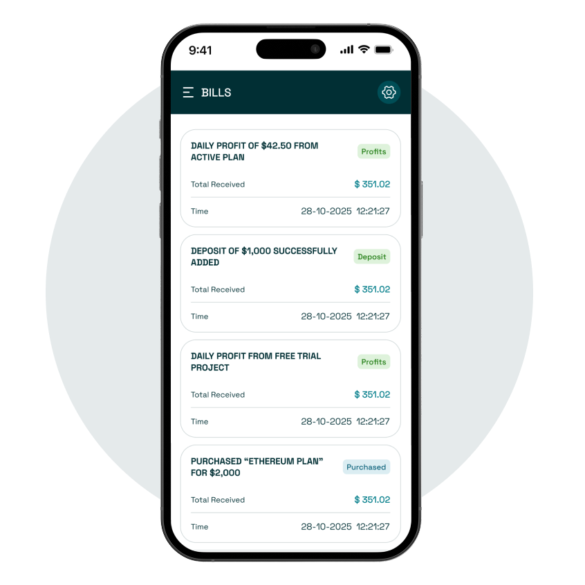 Select from 12+ staking options and activate your preferred mining plan in seconds, with transparent rates and instant tracking.